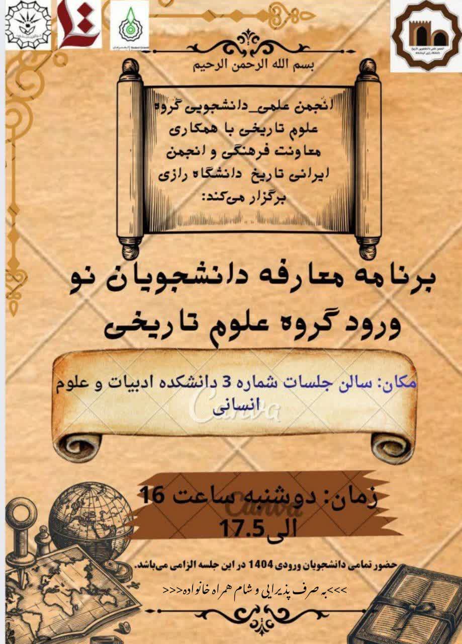 برنامه معارفه دانشجویان نوورود گروه علوم تاریخی دانشگاه رازی