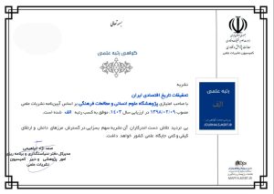 احراز رتبه الف از سوی نشریه تحقیقات تاریخ اقتصادی ایران