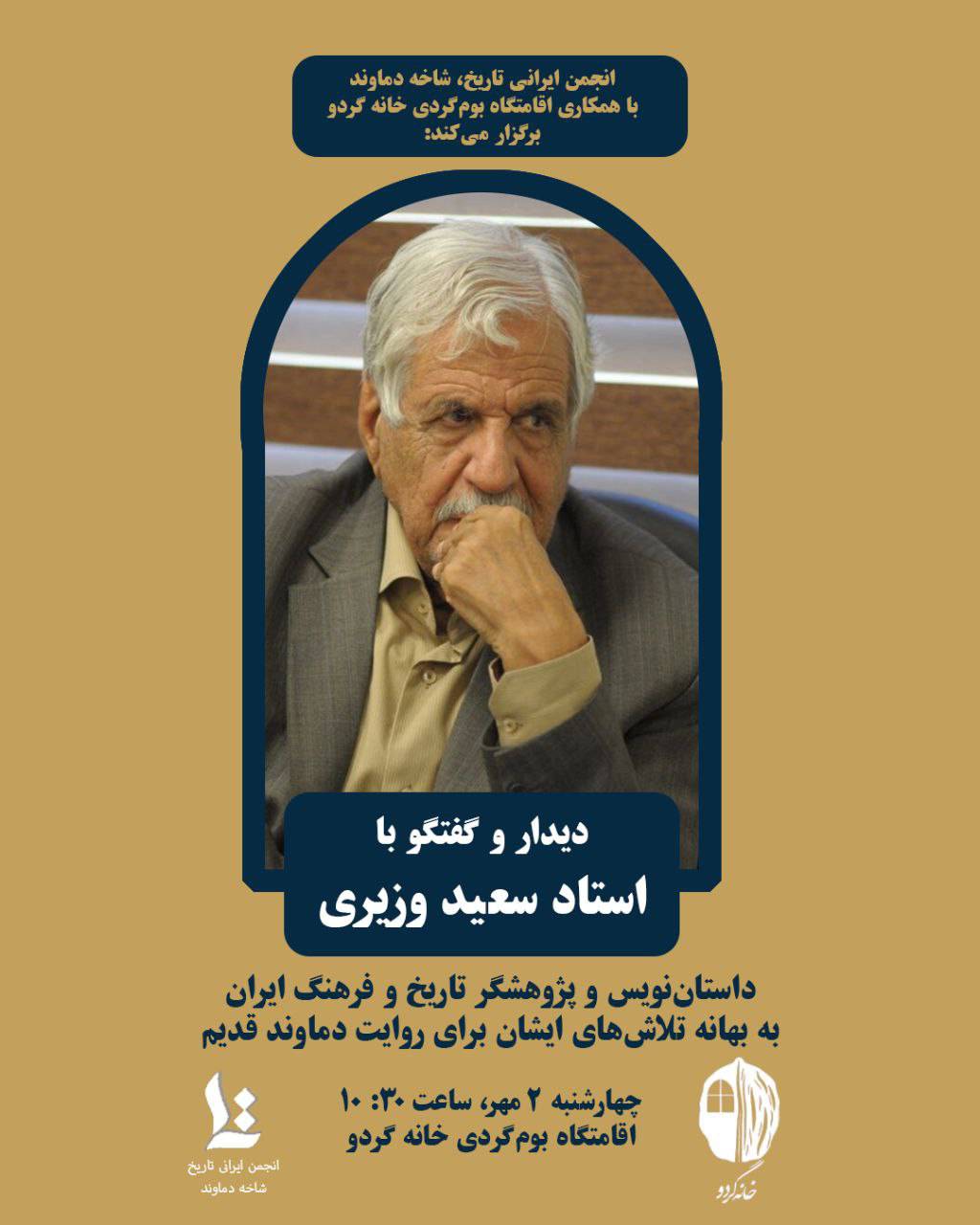 انجمن ایرانی تاریخ شاخهٔ دماوند با همکاری «اقامتگاه بومگردی خانهٔ گردو» برگزار میکند: