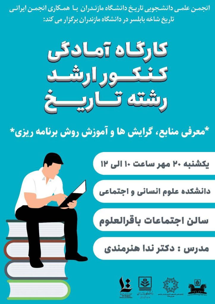 19 مهر اخبار, اخبار شعب انجمن, شاخه بابلسر, شعبه مازندران کارگاه آمادگی کنکور ارشد رشته تاریخ 21 مهر 1404 توسط history-admin 0 دیدگاه با همکاری انجمن ایرانی تاریخ شاخه بابلسر در دانشگاه مازندران برگزار میشود: کارگاه آمادگی کنکور ا...ادامه مطلب