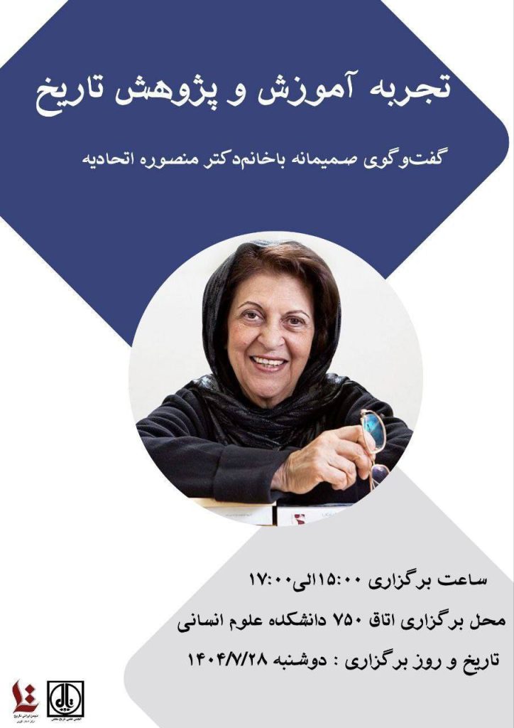 28 مهر اخبار, اخبار شعب انجمن, شعبه قزوین نشست صمیمانه با خانم دکتر منصوره اتحادیه؛ تجربه آموزش و پژوهش در تاریخ 28 مهر 1404 توسط history-admin 0 دیدگاه انجمن ایرانی تاریخ شعبه قزوین برگزار میکند: نشست صمیمانه با خانم دکتر منصوره اتحادیه تجربه آموز...ادامه مطلب