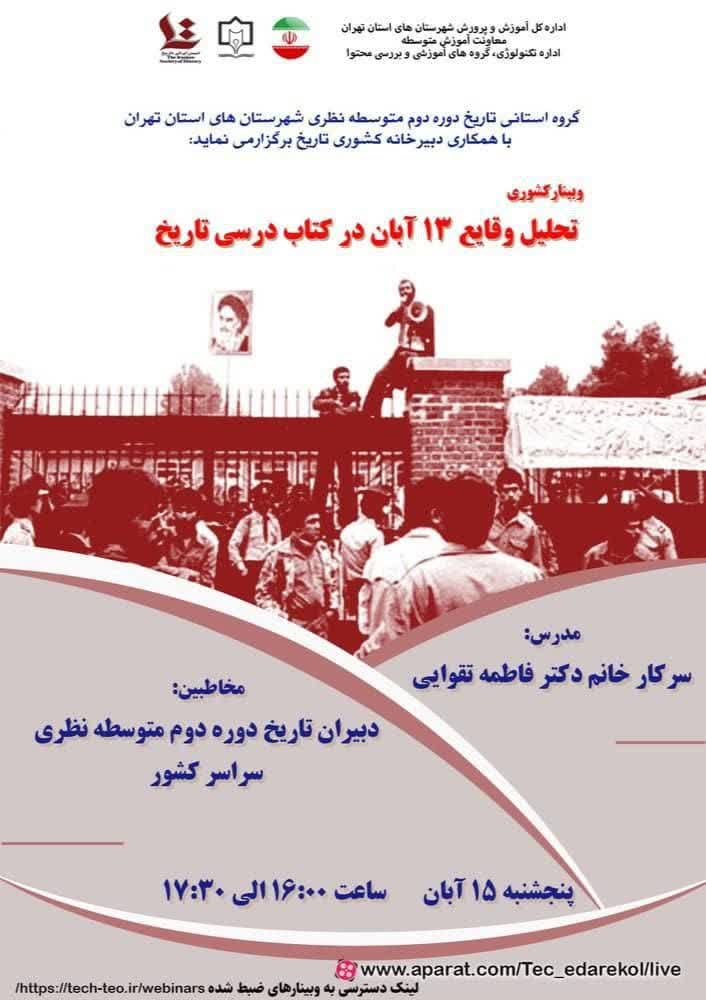 15 آبان اخبار, اخبار نشستهای انجمن ایرانی تاریخ, کارگروه آموزش و پرورش وبینار کشوری تحلیل وقایع 13 آبان در کتاب درسی تاریخ 15 آبان 1404 توسط history-admin 0 دیدگاه باهمکاری انجمن ایرانی تاریخ برگزار میشود: وبینار کشوری: تحلیل وقایع 13 آبان در کتاب درسی تاریخ ...ادامه مطلب