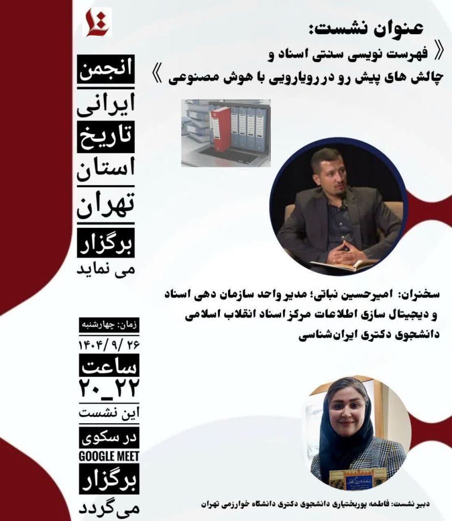 نشست علمی برخط: فهرست‌نویسی سنتی اسناد و چالش‌های پیش رو در رویارویی با هوش مصنوعی