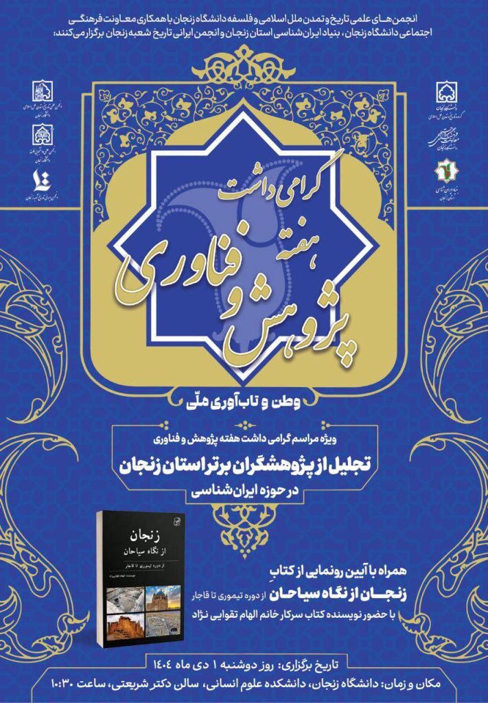 با همکاری انجمن ایرانی تاریخ شعبه استان زنجان برگزار می‌شود: گرامی‌داشت هفته پژوهش و فناوری وطن ...